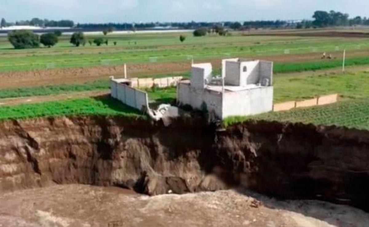 El socavón de Santa María Zacatepec , municipio de Juan C. Bonilla, Puebla “desaparece” la vivienda de una familia, por lo que el gobierno municipal les donó un terreno.