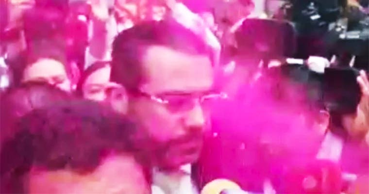 Feministas le arrojan diamantina y aerosol al Jefe de la Policía