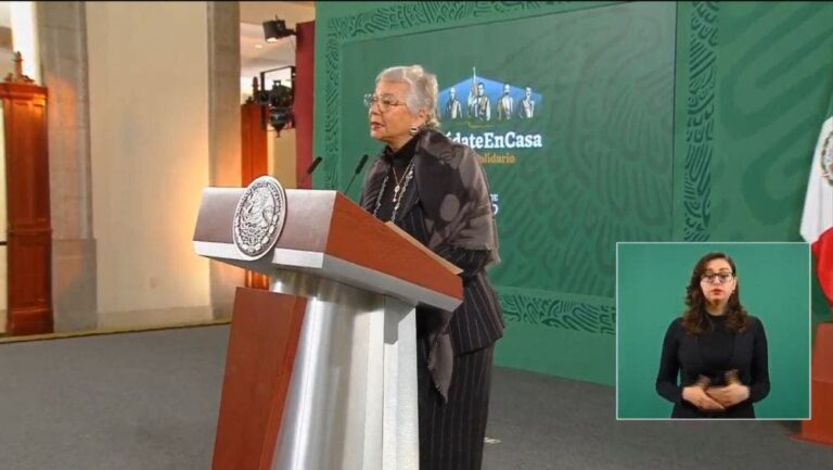 Sánchez Cordero encabezó la conferencia de prensa matutina en Palacio Nacional de este lunes en representación del presidente Andrés Manuel López Obrador, quien se ausentó por primera ocasión tras dar positivo a Covid-19, del cual, informó el domingo, tiene síntomas leves.