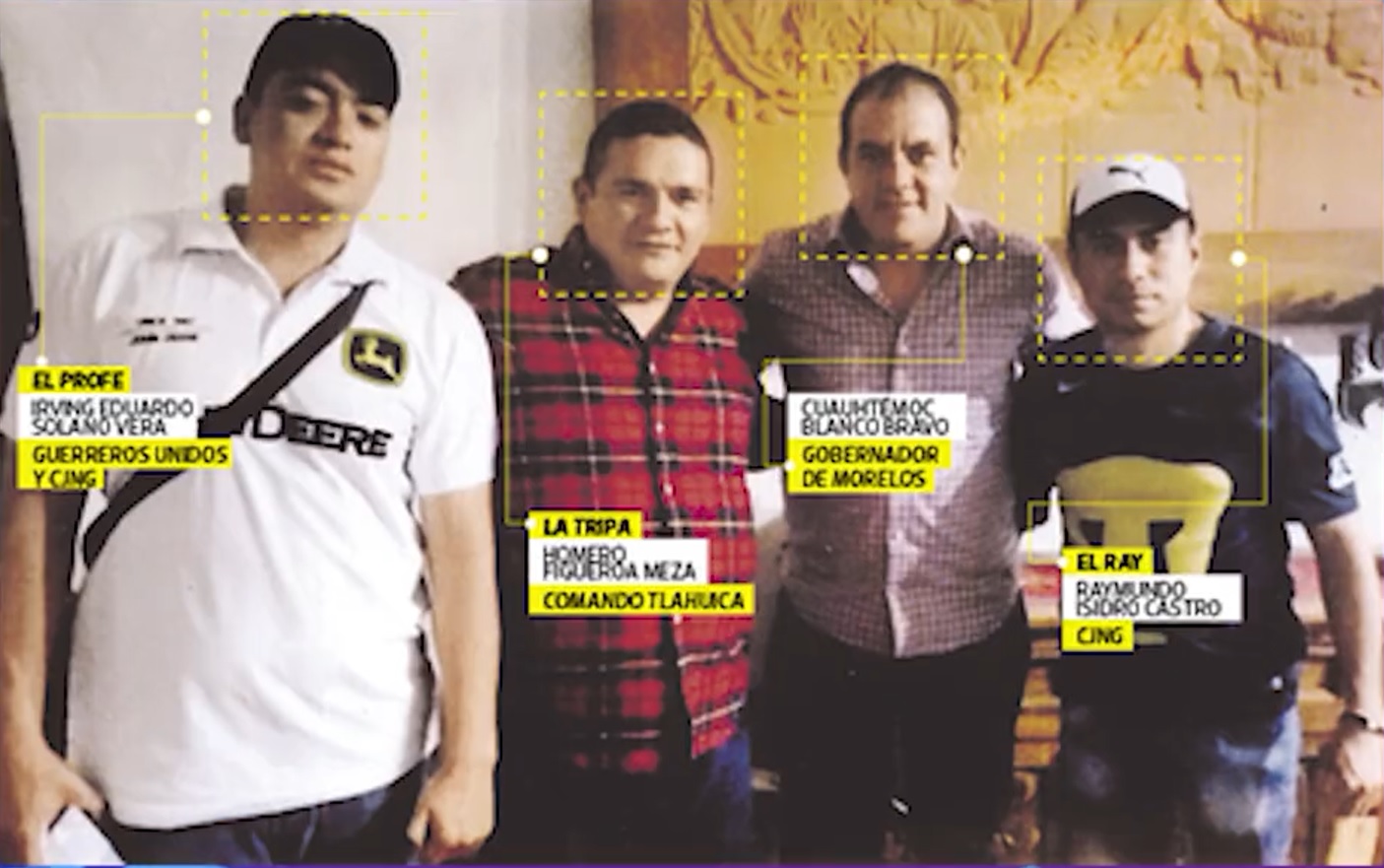 Por otro lado, la imagen en la que Blanco aparece abrazado de estos tres sujetos, habría sido capturada el mismo mes en que el examericanista rindió protesta como Jefe del Ejecutivo de Morelos, y supuestamente fue hallada en el celular de Rosario Herrera, alias “La Jefa”, líder de Guerreros Unidos, quien fue detenida en noviembre de 2021.