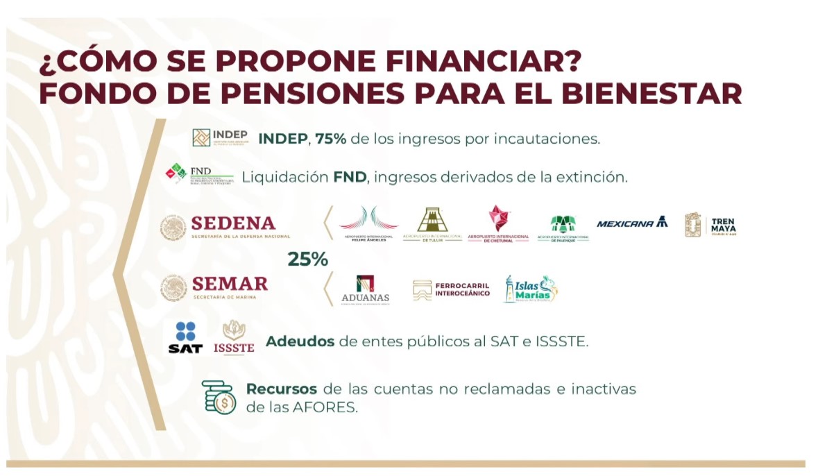 Los recursos para este Fondo de Pensiones para el Bienestar saldrán de cinco partes: