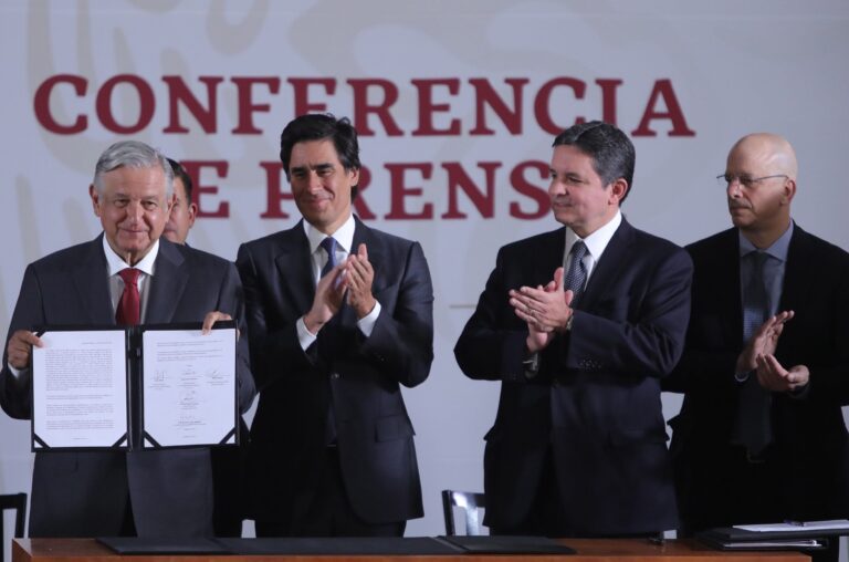 Ciudad de México.– El Presidente Andrés Manuel López Obrador y el Canciller Marcelo Ebrard Casaubón anunciaron esta mañana la renegociación de una parte de la deuda de Petróleos Mexicanos (Pemex) con tres instituciones financieras internacionales: HSBC, JP Morgan y Mizuho Securities.