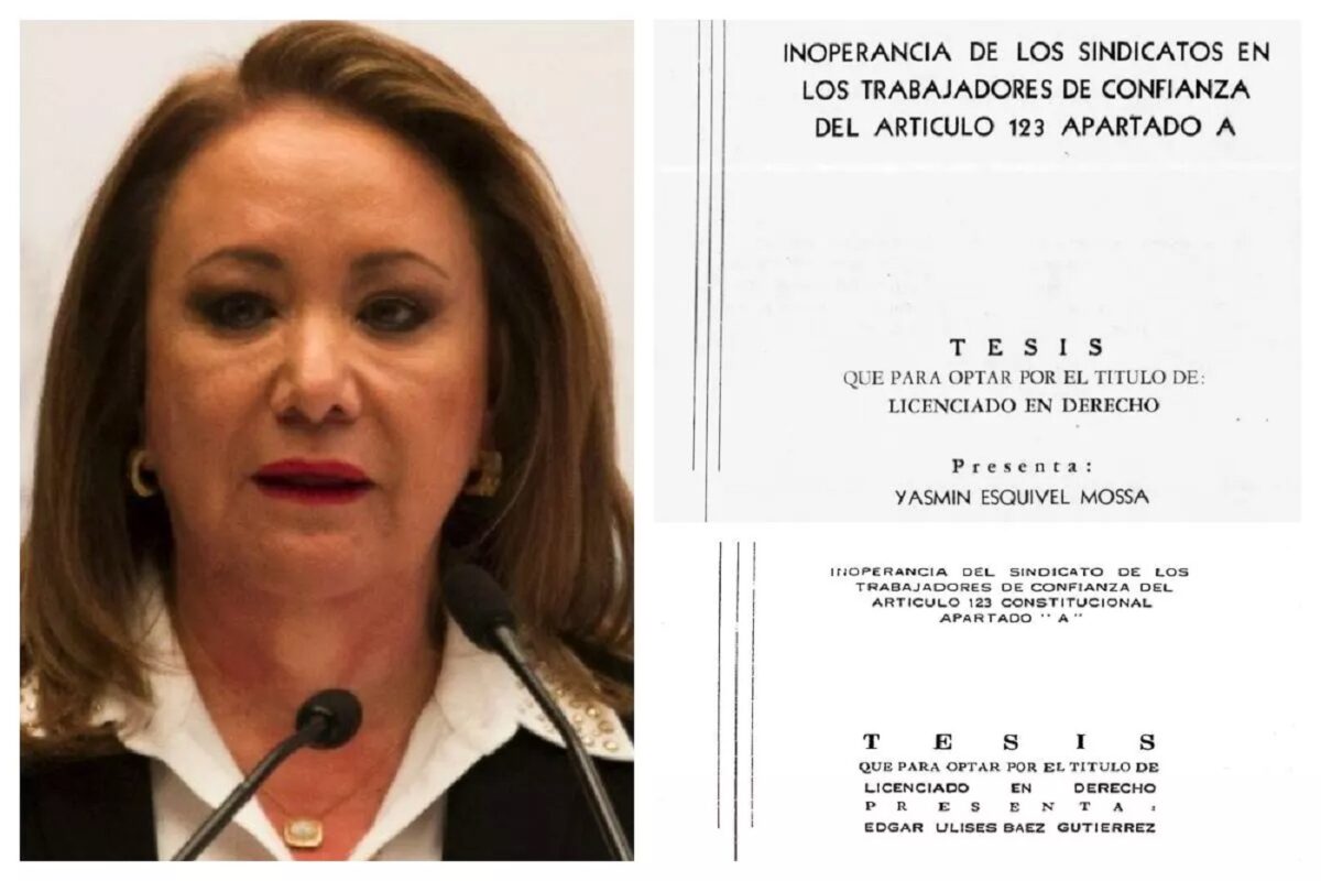 En 1986 Édgar Ulises Báez Gutiérrez se tituló con el trabajo “Inoperancia del sindicato de los trabajadores de confianza del Artículo 123 constitucional apartado A”. Un año después, la actual ministra se tituló con un trabajo similar, según lo mostrado por el escritor y académico de la UNAM, Guillermo Sheridan. Sin embargo, el pasado 25 de diciembre Esquivel Mossa compartió un posicionamiento en donde precisó que su trabajo de titulación lo comenzó a redactar y revisar desde 1985, un año antes de que se publicara el del abogado Edgar Ulises Gutiérrez Báez.