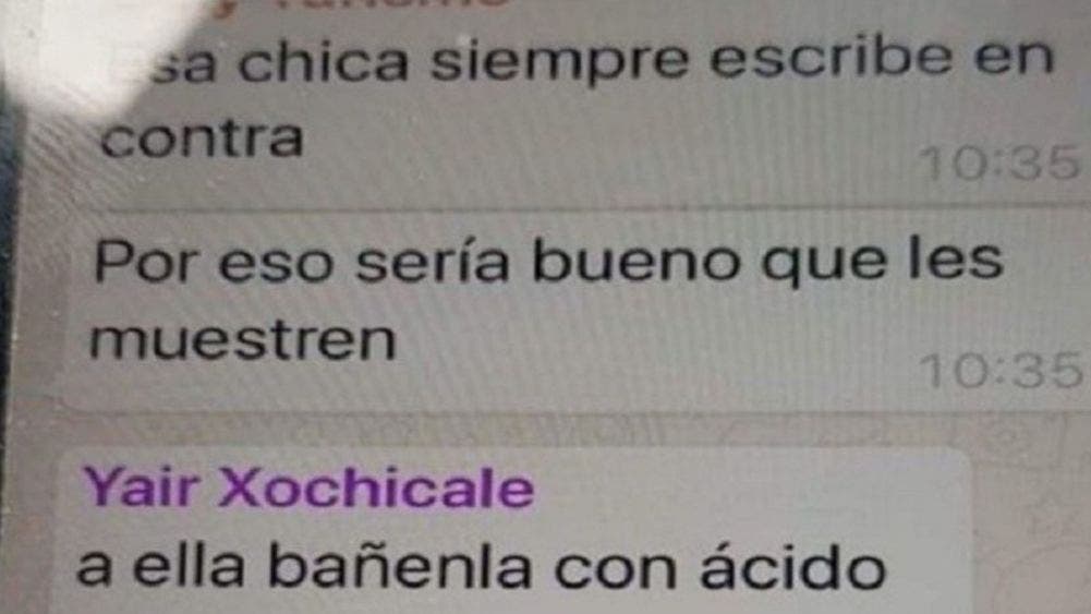 «A ella báñenla con ácido”, se puede leer en el chat denominado Gabinete Zongo 2018-2021.