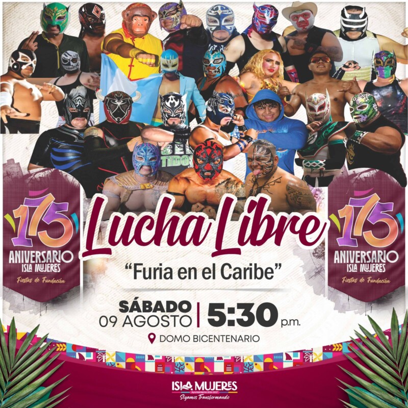 El Gobierno Municipal que encabeza la alcaldesa Atenea Gómez Ricalde, invita a las familias isleñas a la función de lucha libre “Furia en el Caribe”, que se realizará este sábado 9 de agosto a las 17:30 horas en el Domo Bicentenario, en el marco de las Fiestas de Fundación de Isla Mujeres.