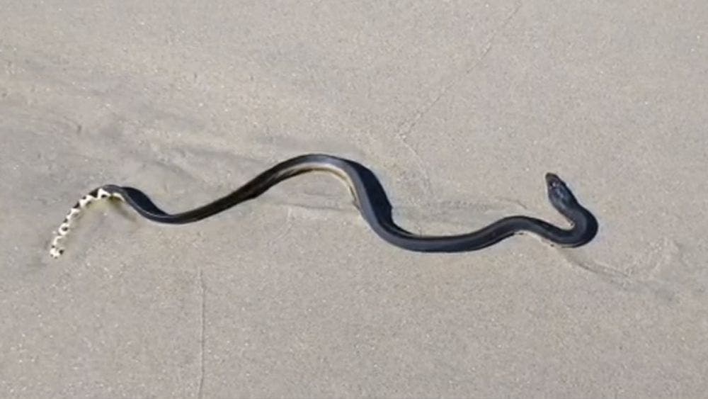 Guardavidas rescata serpiente de mar a orillas de la playa