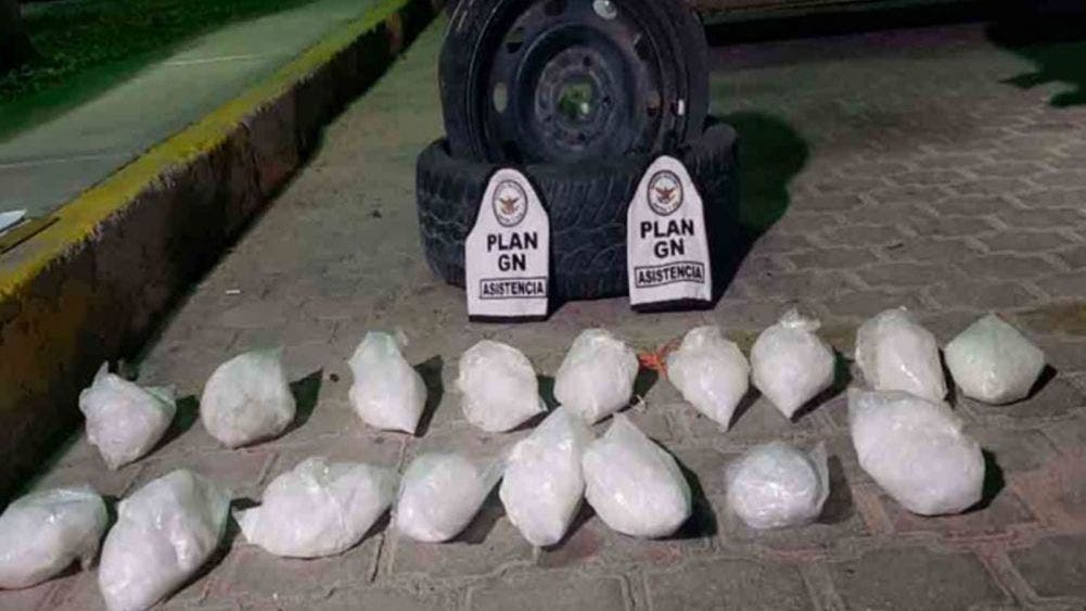 Los elementos de la Guardia Nacional realizaron una inspección de seguridad a las unidades, y se percataron que la camioneta llevaba una llanta de refacción que correspondía a otro vehículo de grandes dimensiones; al revisarla detectaron que había un compartimiento que ocultaba aproximadamente 17 paquetes de la probable droga.
