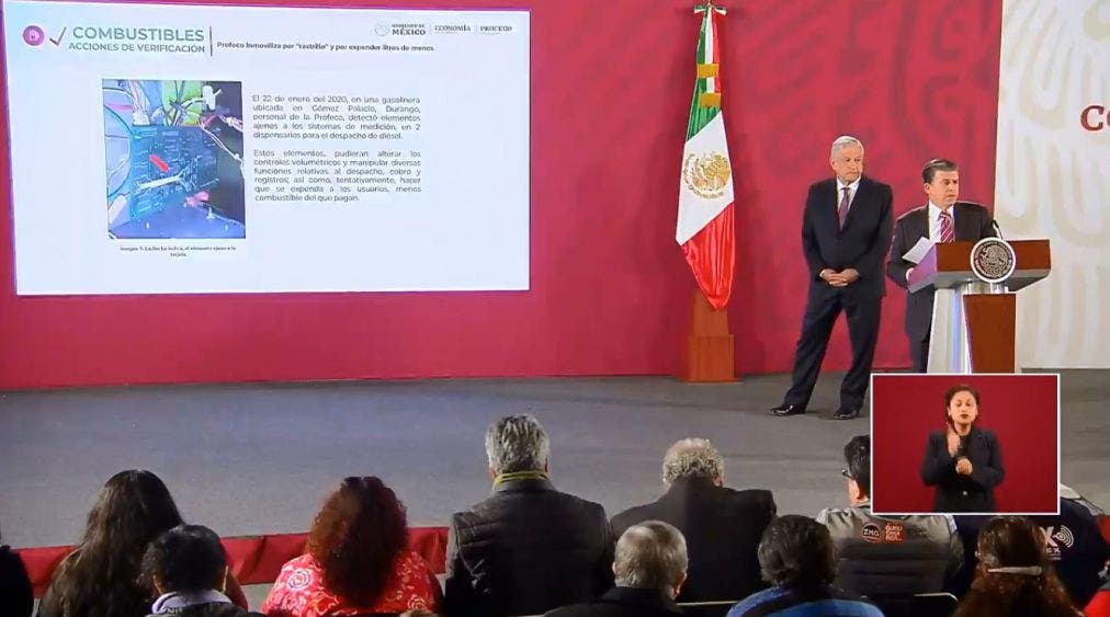 En la conferencia matutina presidencial, presentó el informe semanal “Quién es quién en el precio de la gasolina” y reveló el caso de una gasolinera en Gómez Palacio, Durango, donde se encontraron los manipuladores tecnológicos.