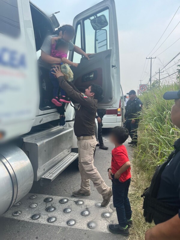 Al abrir la puerta de la caja de la unidad de carga, se identificó a personas extranjeras de distintas edades; de inmediato, quienes fueron rescatadas para brindarles atención y constatar su estado de salud.