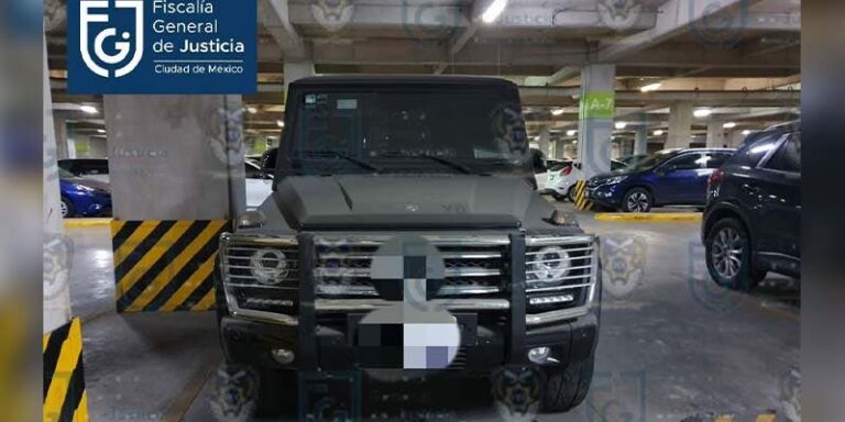 Hallan en una plaza comercial vehículos de lujo robados .- Personal de la Fiscalía General de Justicia capitalina (FGJCMX) hallaron cinco vehículos de lujo, cuatro con reporte de robo, en un estacionamiento de una plaza comercial de Avenida Jardín en la alcaldía de Azcapotzalco.