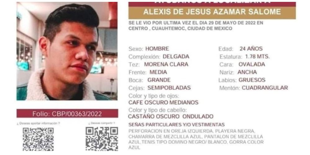 El joven de 24 años fue visto por última vez el 29 de mayo, luego que asistió a una fiesta universitaria en la alcaldía Cuauhtémoc.
