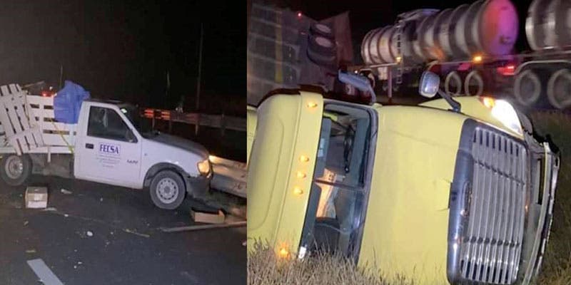La unidad que llevaban el cuerpo, se salió del camino, ante el fuerte impacto; el conductor del tráiler, intentó evadir el golpe, pero terminó volcado luego del choque.