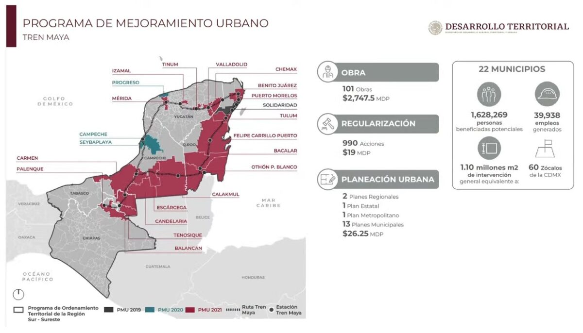 Tren Maya con 101 obras de mejoramiento urbano