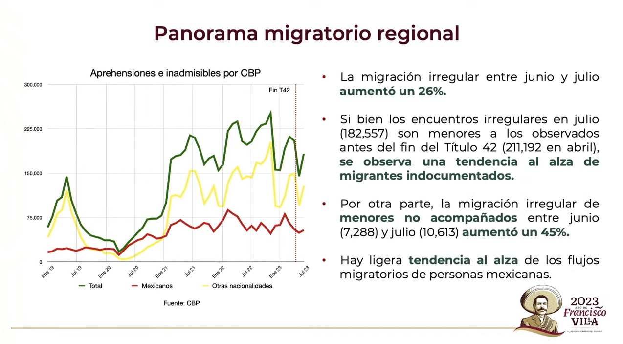 En su conferencia, dijo que el repunte de la migración en 26 por ciento en la región corresponde a personas de otros países porque en el caso mexicano, el repunte ha sido muy ligero. Recordó que de acuerdo a los reportes del Inegi ha habido un mejor remonto en las condiciones económicas y sociales, una reducción de la pobreza.