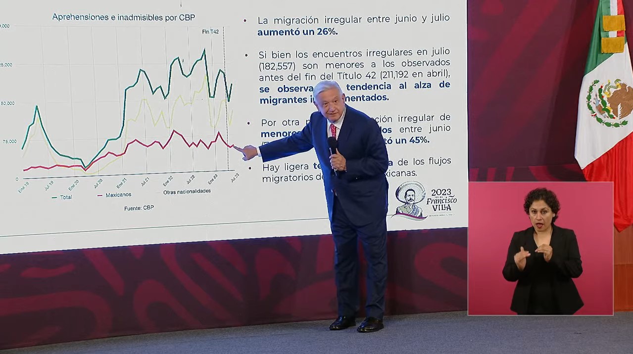 En su conferencia, dijo que el repunte de la migración en 26 por ciento en la región corresponde a personas de otros países porque en el caso mexicano, el repunte ha sido muy ligero. Recordó que de acuerdo a los reportes del Inegi ha habido un mejor remonto en las condiciones económicas y sociales, una reducción de la pobreza.