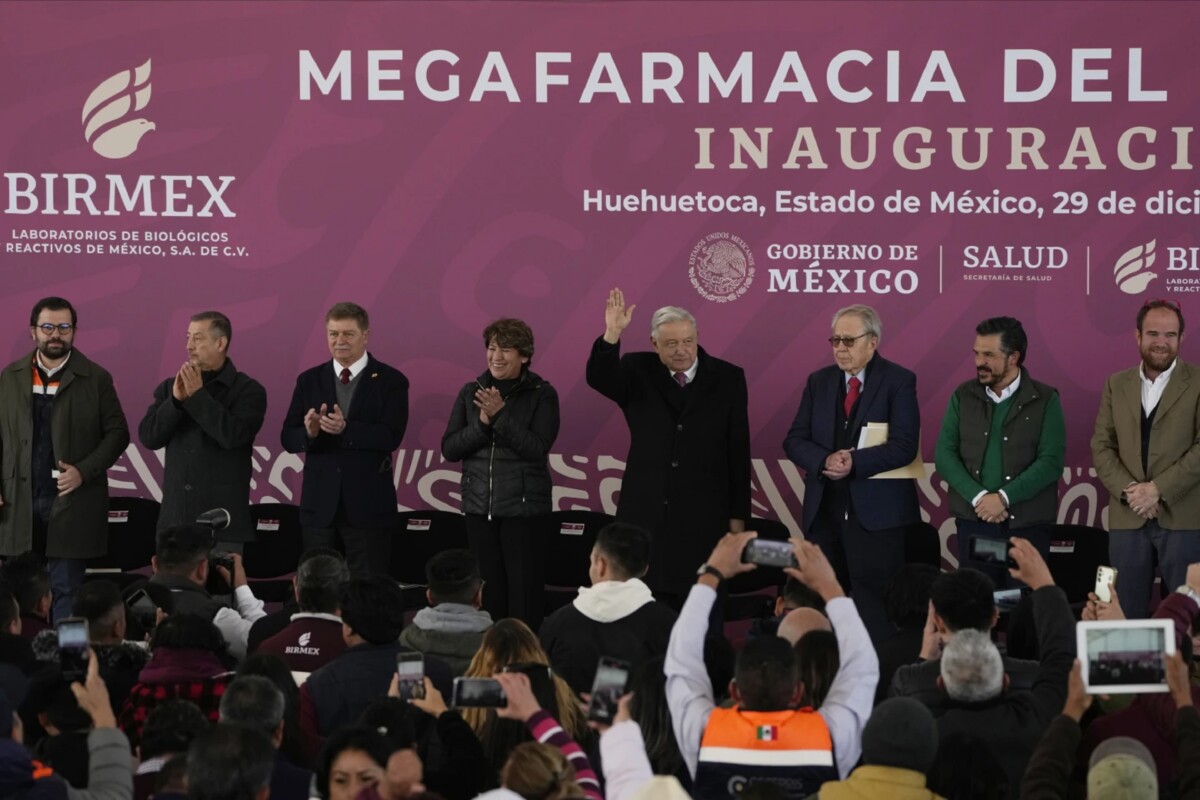 El mandatario junto a la gobernadora del estado de México, Delfina Gómez Álvarez, cortaron el listón de la Megafarmacia del Bienestar, un proyecto anunciado como “quizá” la “farmacia más grande del mundo” para abastecer de medicamento a todo el país de manera gratuita.