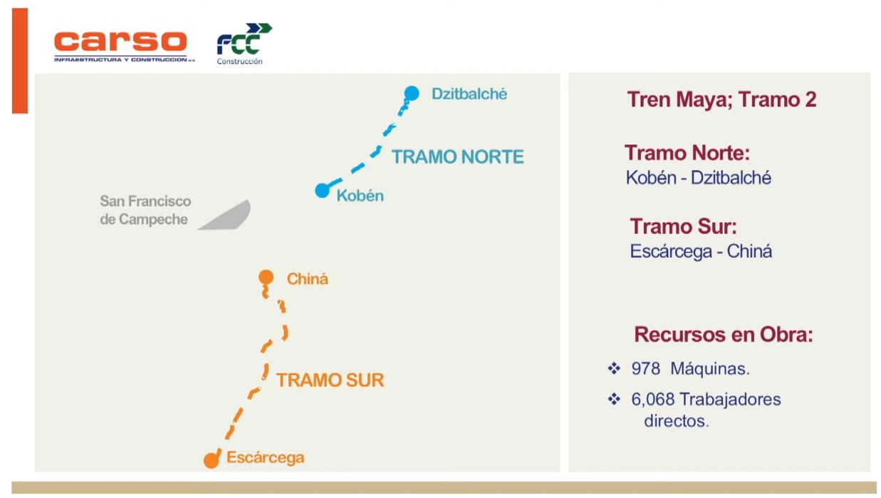 En el subtramo norte (Kobén-Dzitbalché) finalizó la construcción de vía, 107 obras de drenaje y 76 puentes y viaductos. La edificación de dos estaciones avanza de acuerdo con el programa, informó el director general de Grupo Carso, Antonio Gómez García.
