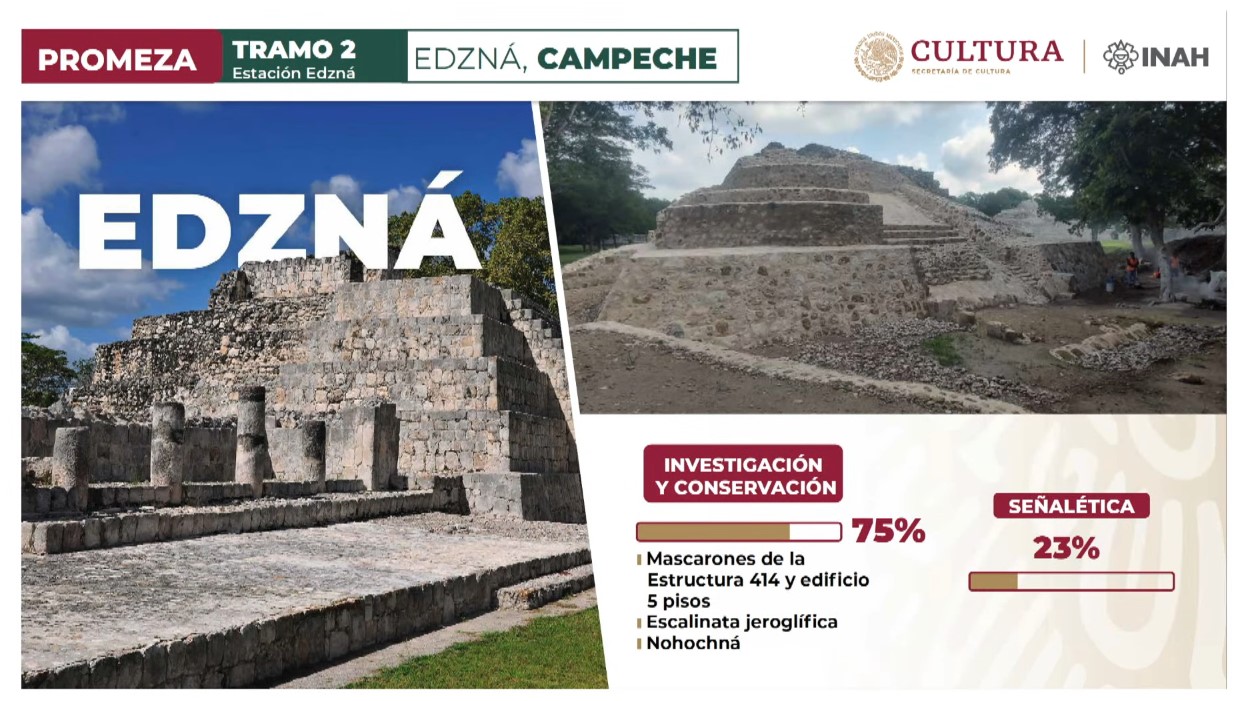 A través del Programa de Mejoramiento de Zonas Arqueológicas (Promeza), el INAH trabaja en Edzná y Xcalumkín, en Campeche. En ambos sitios de relevancia histórica avanzan las tareas de investigación, conservación, mantenimiento y señalética, así como la edificación de los Centros de Atención a Visitantes (Catvi).