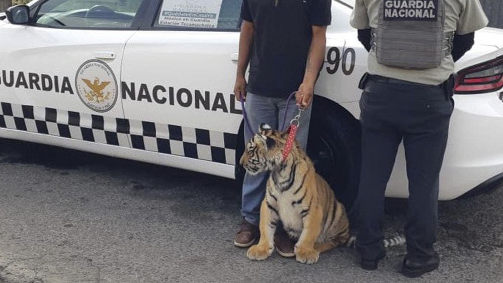 Incauta Guardia Nacional un tigre de Bengala a automovilista