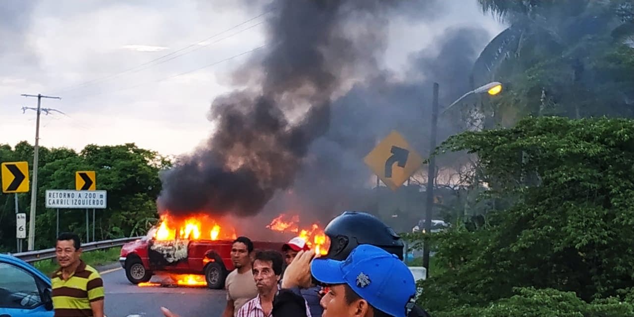 Incendian autos en Tabasco; “dan bienvenida” a Guardia Nacional – Con al menos cuatro vehículos incendiados se cerraron los accesos y salidas sobre la carretera federal Villahermosa-Teapa, donde se halló amarrada una manta sobre la vía con un mensaje dirigido a la Guardia Nacional, lo cual causó la movilización policiaca en el lugar.