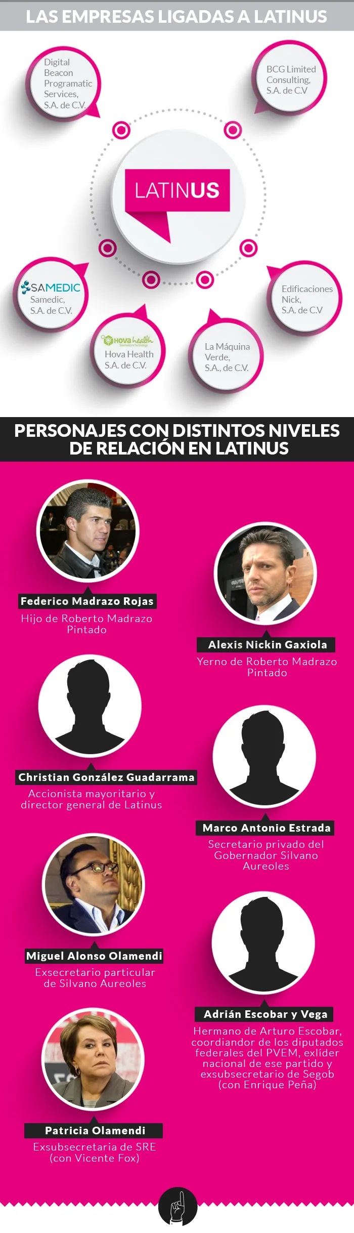 El reportaje acreditó entonces que el secretario privado del Aureoles, Marco Antonio Estrada Castilleja, es accionista de BCG Limited Consulting, S.A. de C.V., una de las empresas propiedad de Latinus, mientras que Miguel Alonso Olamendi, también vinculado a este portal que tiene como estelares a Carlos Loret de Mola y Víctor Trujillo, fue secretario particular del exgobernador perredista.