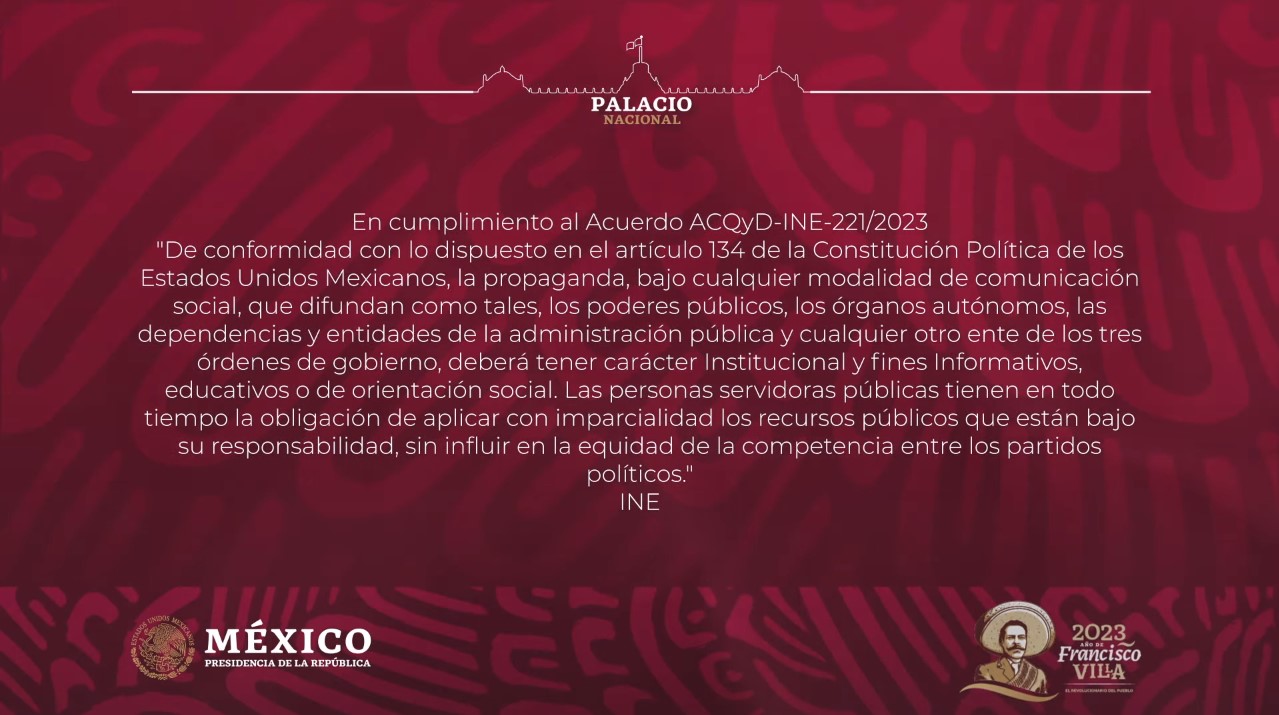 El Instituto Nacional Electoral (INE) ordenó al presidente Andrés Manuel López Obrador retirar la ‘posdata’ con el mensaje dirigido a los conservadores al inicio de las conferencias mañaneras, con la que acompañó la cortinilla de advertencia que se le instruyó colocar para que el mandatario ajuste sus declaraciones al marco constitucional y legal electoral y que no tengan carácter proselitista.