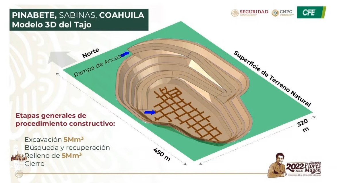La Comisión Federal de Electricidad (CFE), junto con la Coordinación Nacional de Protección Civil (CNPC), comenzaron el 11 de diciembre los trabajos de búsqueda y recuperación de los restos de 10 mineros atrapados en la mina carbonera de El Pinabete, ubicada en el municipio de Sabinas, en Coahuila.