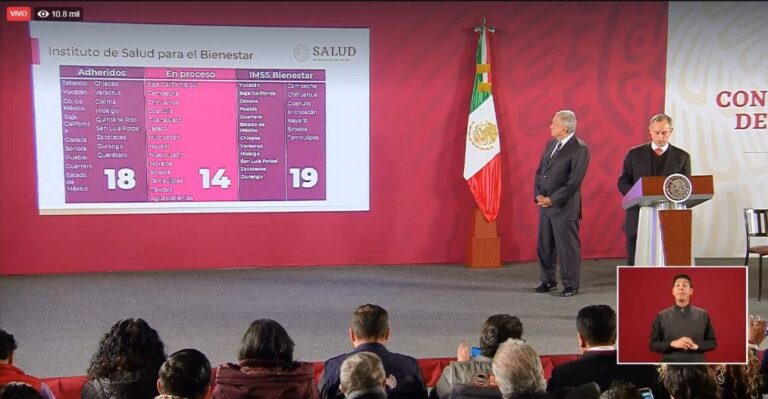 Durante la conferencia matutina, el funcionario federal explicó que ya están dentro del sistema del Insabi Tabasco, Yucatán, Ciudad de México, Baja California, Oaxaca, Sonora, Puebla, Guerrero, Estado de México, Chiapas, Veracruz, Colima, Hidalgo, Quintana Roo, San Luis Potosí, Zacatecas, Durango y Querétaro.