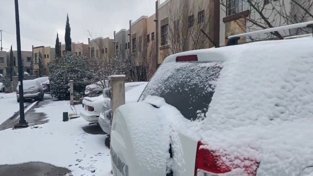 La frontera de Nogales amaneció este martes 26 cubierta de blanco, al registrarse desde la noche del lunes una intensa nevada en el norte de Sonora, como parte de la tormenta invernal que ingresó a la región desde el fin de semana.