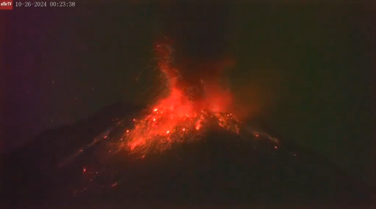 Tras varios periodos de tremor, este 25 de octubre a las 00:00 horas, se observó la expulsión de material balístico alrededor del cráter. Lo que autoridades catalogaron dentro del Nivel de Alertamiento Volcánico, Amarillo Fase 2.