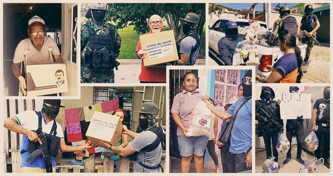 Pero la “entrega de apoyos” por parte de cárteles no cesó. El Cártel del Golfo (CDG) fue uno de los primeros en dar insumos como apoyo ante la pandemia global del nuevo coronavirus. En los primeros días de abril, en redes sociales se difundieron fotografías de presuntos integrantes del cártel entregando cajas con despensa a pobladores de Ciudad Victoria, Tamaulipas.