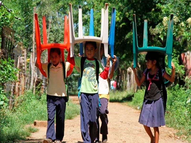 Algunos niños en las comunidades marginadas no tienen en donde sentarse;sin embargo, el gobierno les ha quitado un poco de presupuesto, ahora los niños se las ingeniaran para poder tener un silla .
