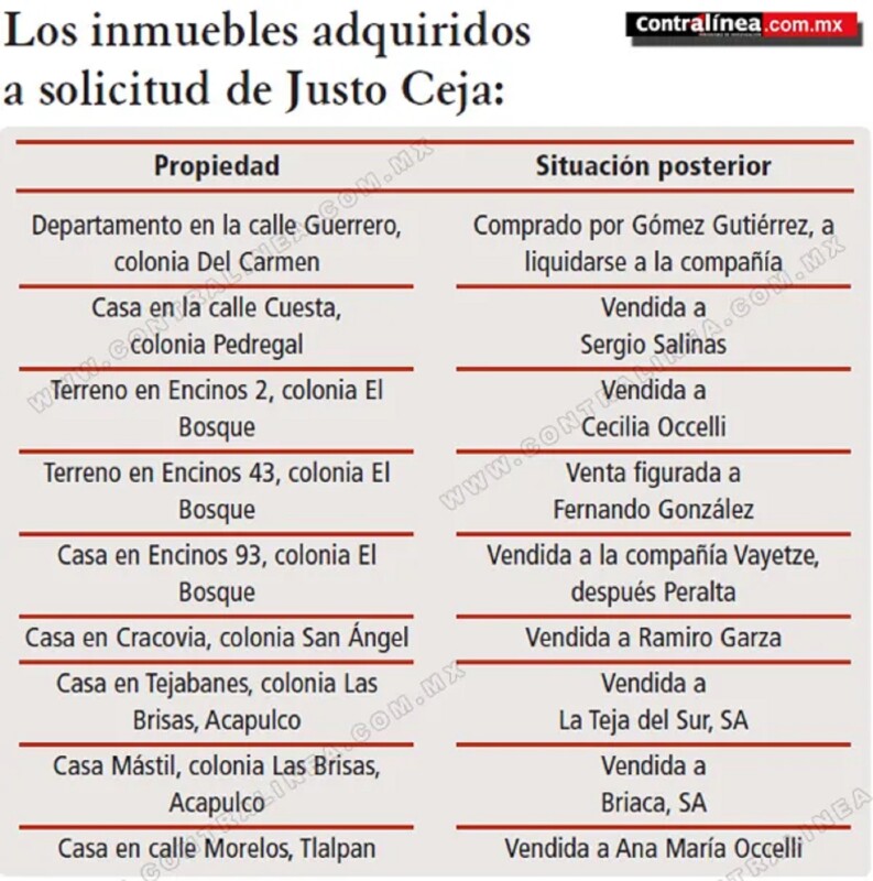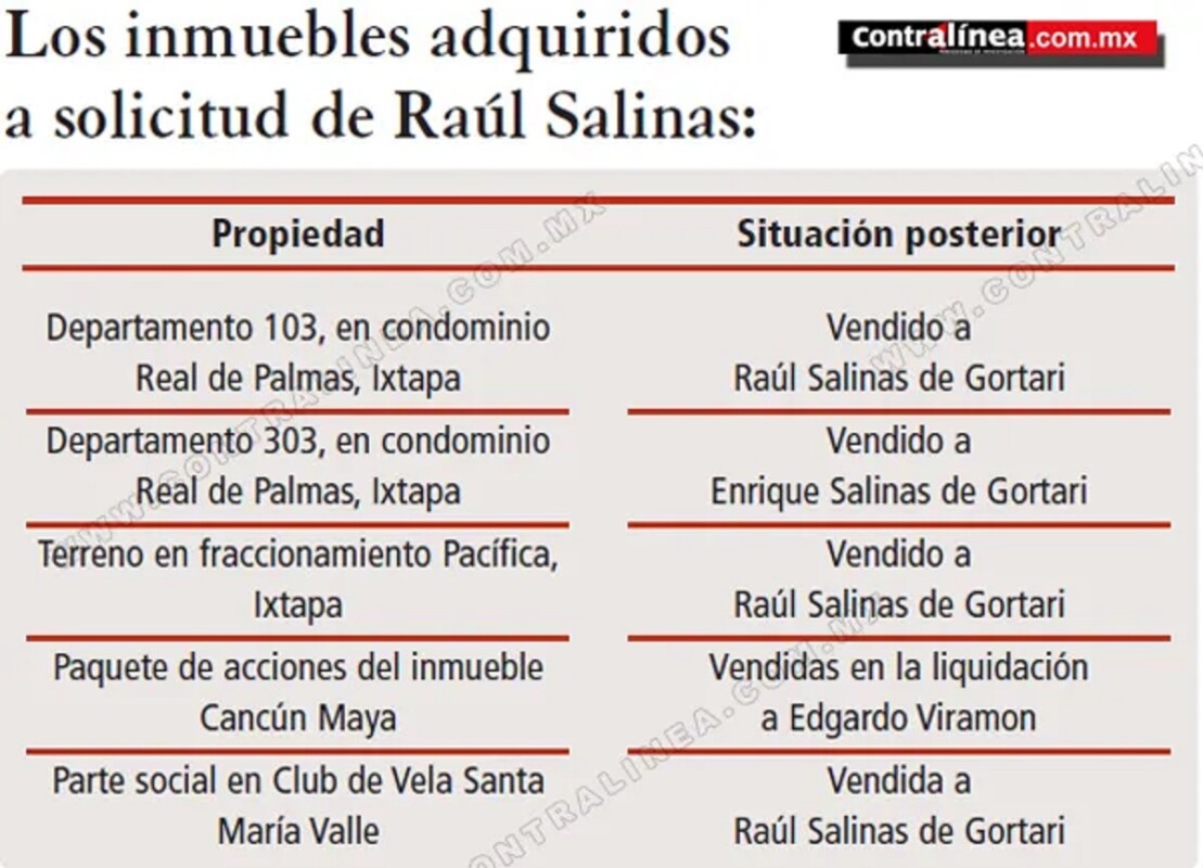 Cada compra-venta de bienes inmuebles se realizó por órdenes de Raúl Salinas y de Justo Ceja, quienes aportaban el capital de la empresa.