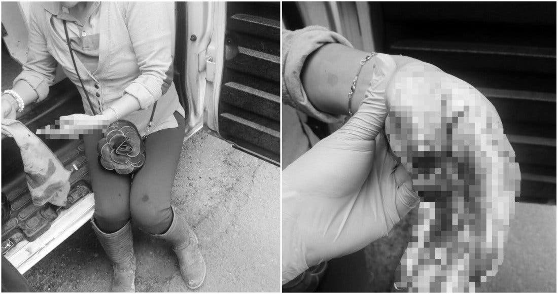 Durante el hurto, el detenido le mordió un dedo de la mano izquierda a la mujer, por lo que fue atendida y diagnosticada con amputación parcial del dedo pulgar por paramédicos de Protección Civil.