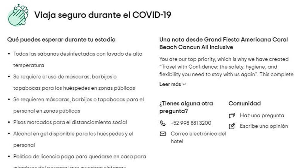 De esta manera, los usuarios pueden conocer qué hoteles están aplicando protocolos sanitarios y en qué consisten éstos, así como sus restricciones en esta materia, lo cual busca ayudar a los turistas a viajar de forma segura.