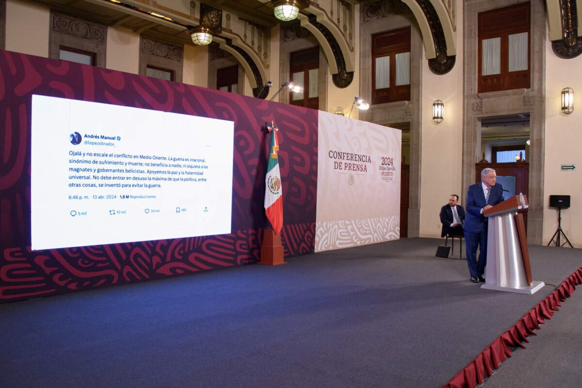 El presidente Andrés Manuel López Obrador llamó al cese del fuego en Medio Oriente y a la solución pacífica de las controversias. Respecto al actual conflicto bélico en esa región dijo que el Gobierno de México fundamenta su postura con base en el artículo 89 de la Constitución Política de los Estados Unidos Mexicanos en materia de política exterior.