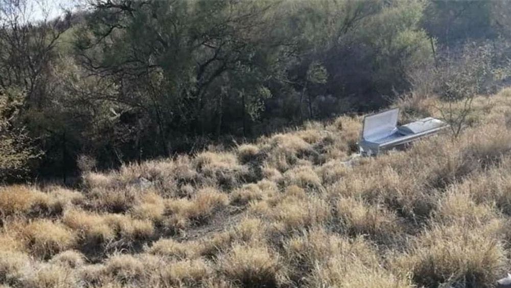 Según informaron las autoridades, se trató de un ataúd caído de un transporte de carga, que surte de féretros a las comunidades del Río Sonora y Sierra Alta.