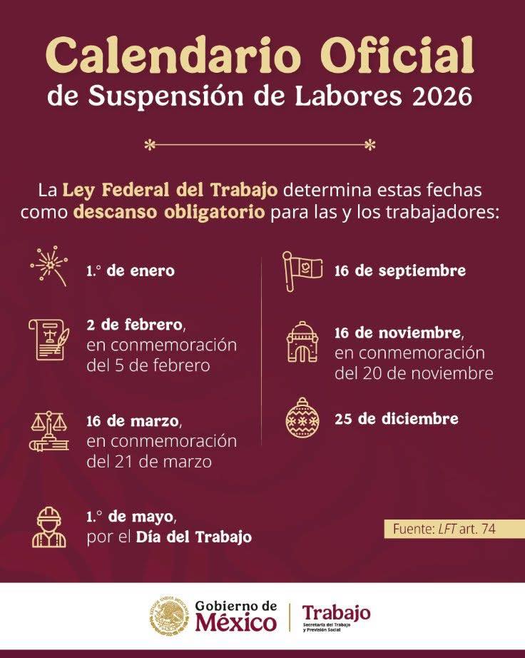 El año 2026 trae consigo su primer “puente” largo, que se extenderá del viernes 30 de enero hasta el lunes 2 de febrero; este descanso se debe a la conmemoración del aniversario 109 de la Constitución Política de los Estados Unidos Mexicanos, aunque la fecha oficial de dicha celebración es el 5 de febrero.