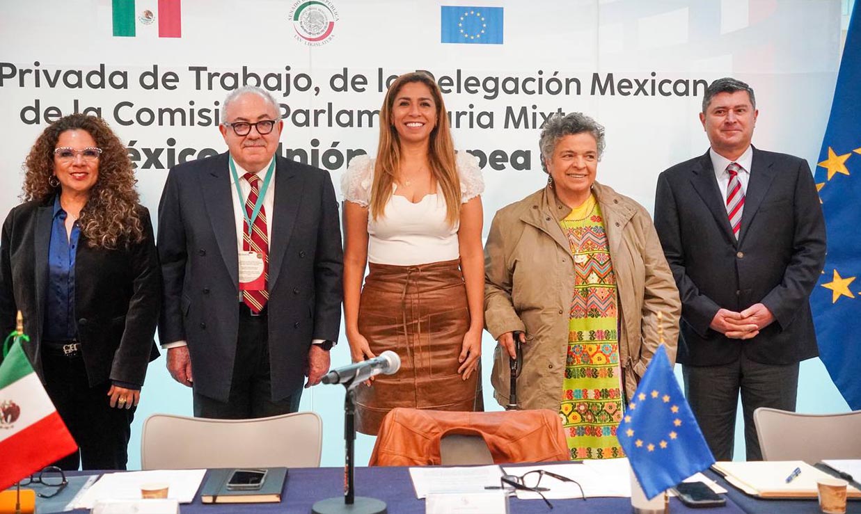 “Esta reunión fue para exponer el contexto de la XXX Reunión de la CPM, que celebraremos los próximos 28 y 29 de noviembre, aquí en las instalaciones del Senado, de la agenda que se manejará para esos días, así como los temas más importantes de la agenda bilateral México-Unión Europea, particularmente el estatus del Acuerdo Global Modernizado, que es un tema de muchísima relevancia en la relación bilateral”, indicó la senadora Marybel Villegas.