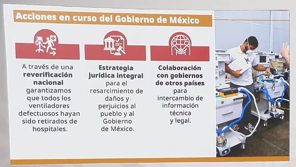 En la conferencia presidencial, también informó que exigen a la empresa Phillips el resarcimiento de daños y perjuicios al pueblo y al gobierno de México por la entrega de ventiladores defectuosos, también durante el periodo de la emergencia por Covid 19-de ventiladores defectuosos.
