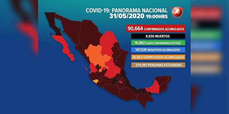 México supera los 90 mil casos positivos por Covid-19.- Autoridades del al Secretaría de Salud informaron que el número de casos positivos por Covid-19 incrementó a 90 mil 664 en México.