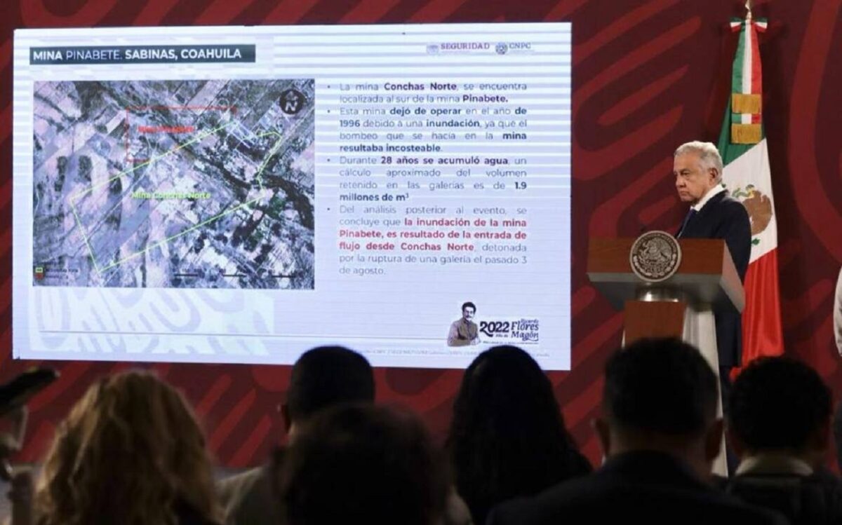 “Se está dialogando con ellos, es muy triste, entendible, la situación de los familiares de los mineros atrapados; merecen toda nuestra consideración y respeto. Son situaciones muy graves, lamentables. ¿Qué sucede?, pues se inundó la mina. Estaban 15 trabajadores, cinco se salvaron, se infiere que fue por la misma presión del agua. ¿Por qué la mina se inunda? Porque está ubicada junto a una mina muy grande abandonada, inundada y se presume que hubo una ruptura de las paredes y por ahí se filtró el agua en grandes volúmenes y se inundó la mina”, precisó el oriundo de Tabasco.