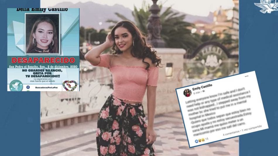 En el mensaje, la adolescente de una comunidad rural de Hermosillo, Sonora, de nombre Emily Castillo, asegura que está bien y que no fue secuestrada, sin embargo, el mensaje desapareció de su perfil-