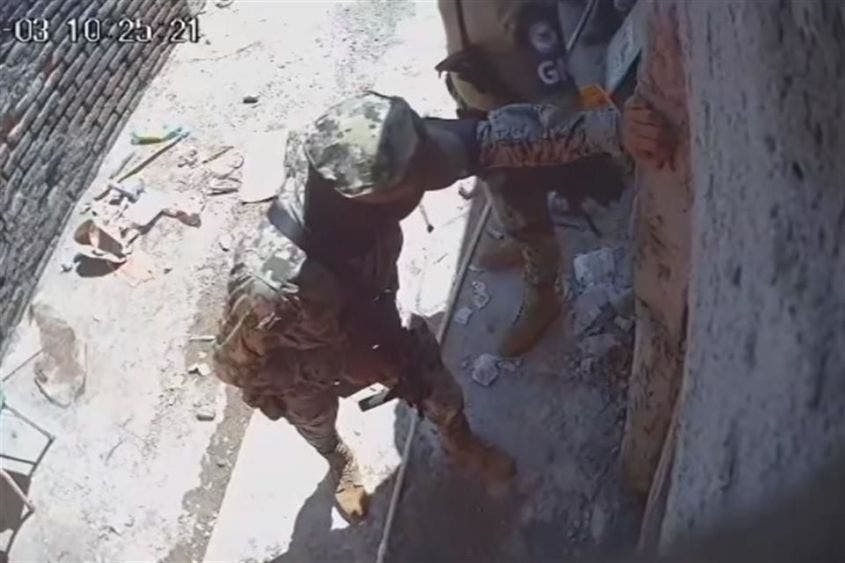 En los videos grabados por una cámara de seguridad y distribuidos en redes sociales, los presuntos soldados amenazaron con golpear a un sujeto identificado como “Cholo”, si no les daba dinero.