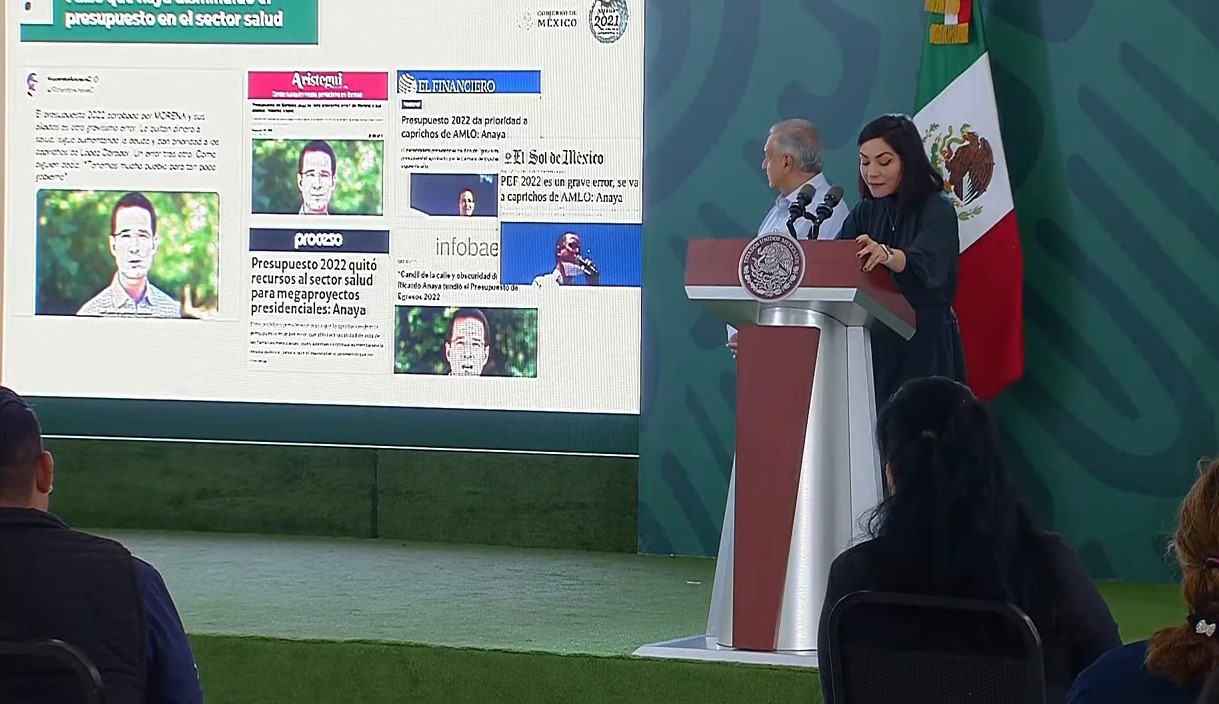 “En primer lugar, Anaya asegura que el presupuesto en salud disminuiría, cito: ‘El presupuesto baja, lo reducen en tres mil millones de pesos en plena pandemia’. Eso no es verdad, el gasto del gobierno federal para salud en 2022 será de 15.2 por ciento mayor en términos reales respecto a lo aprobado para este año, en 2022 sumará 794 mil millones de pesos, 105 mil 200 millones más que en 2021.