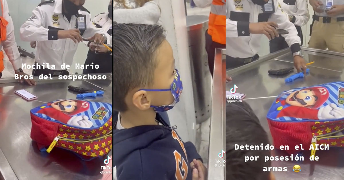 El menor de seis años llevaba un par de pistolas de juguete dentro de su mochila de Mario Bros; las autoridades aeroportuarias tuvieron que revisar el equipaje de los adultos también pic.twitter.com/O9ORos5ehB— Paco Elizondo Oficial (@pacoelizondo_1) July 6, 2022