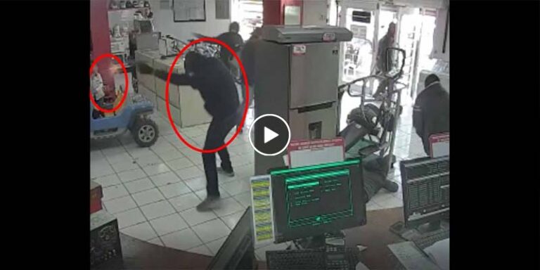 Los niños estaban en medio del enfrentamiento entre un seguridad y un asaltante, el video muestra como el sujeto intenta disparar al guardia, pero su arma se atora, por lo que este instante es aprovechado por el seguridad para abatir a uno de los sujetos.