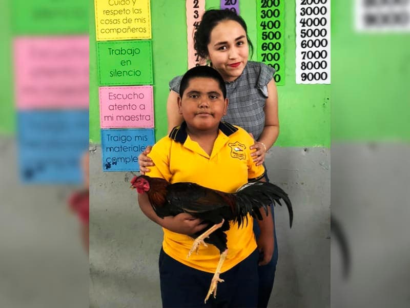 – Es un gallito maestra, escogí el más bonito que tenía para traérselo, no tengo dinero para comprarle nada, pero espero le gusten los gallos y no se preocupe busque con los vecinos quien me diera aventón a la escuela para poder traerle su regalo.