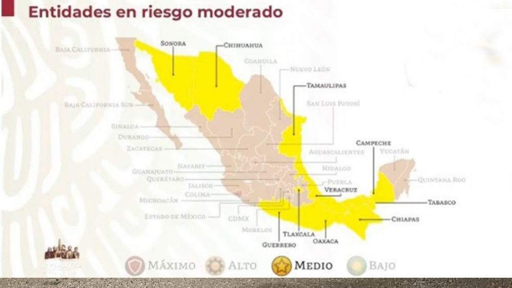 Los estados que están en semáforo amarillo son: Chihuahua, Tamaulipas, Campeche, Tlaxcala, Oaxaca, Veracruz, Tabasco, Chiapas, Guerrero y Sonora.