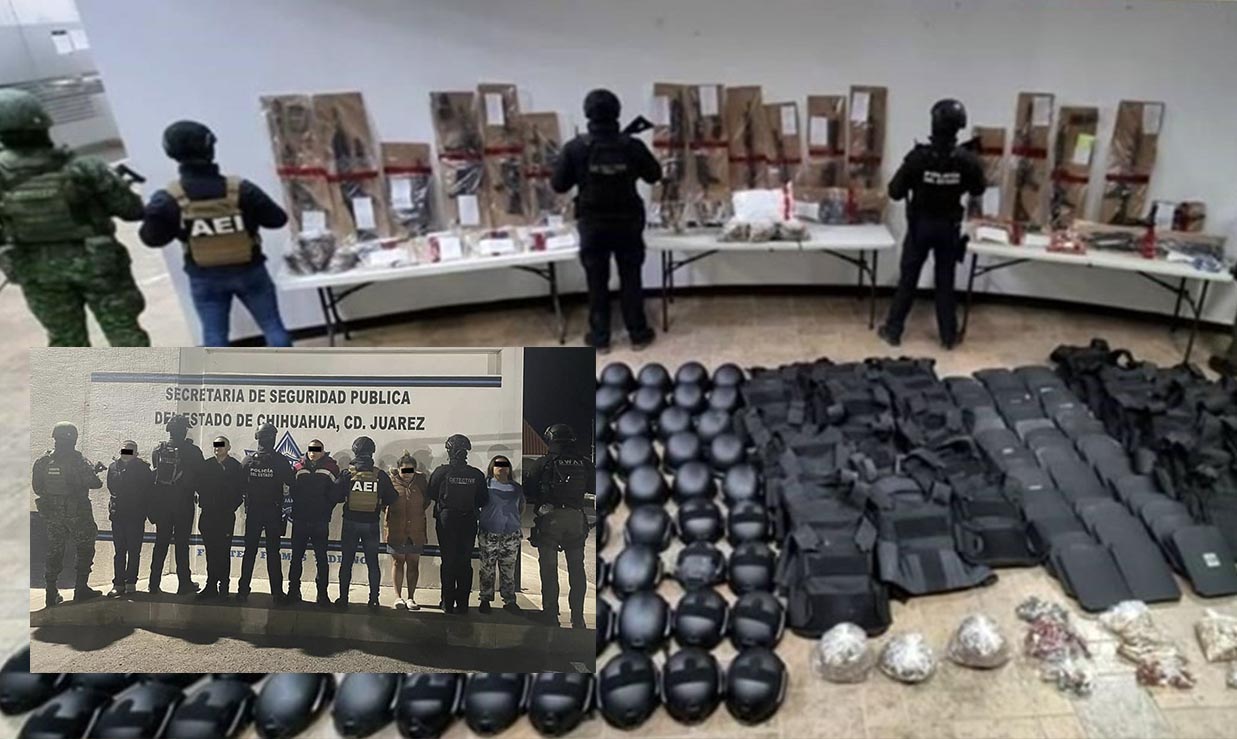 Un operativo realizado por autoridades de los tres niveles de gobierno en Ciudad Juárez, Chihuahua, en el marco de la búsqueda y captura de los evadidos del Centro de Readaptación Social (Cereso) No 3 de Ciudad Juárez, dejó como resultado el decomiso de un enorme arsenal y la detención de 5 personas.